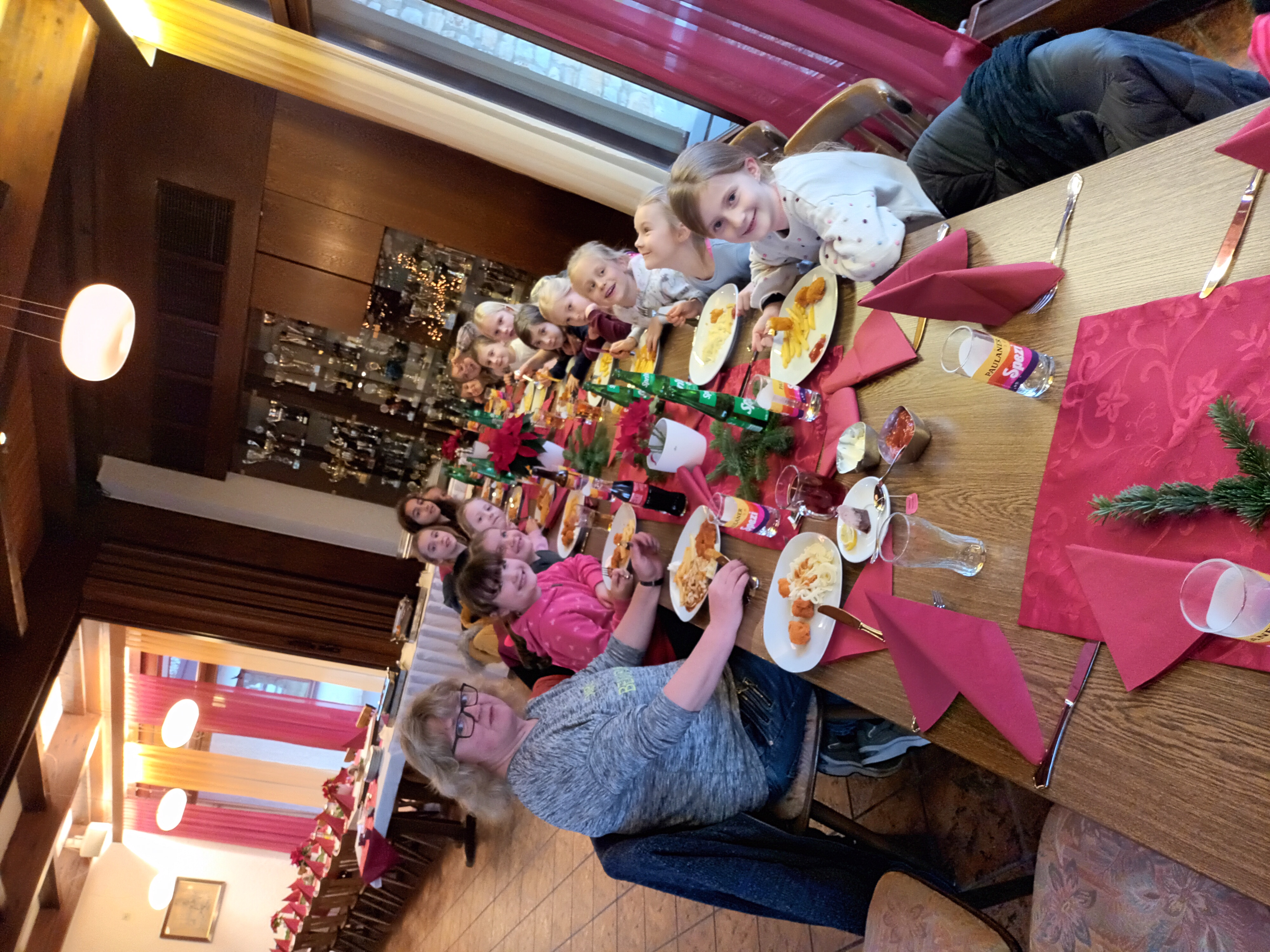Am 14.12. feierten die Mädels der Teen Dance Gruppe mit ihrer Übungsleiterin Andrea Speier ihre Weihnachtsfeier in der Sportgaststätte Weiherwiesen. Bei leckerem Essen mit Pommes, Chicken-Nuggets, Spätzle und Soße konnten sich die Mädels stärken bevor ein Überraschungsgast zur Tür hereinkam: der Weihnachtsmann. Schnell wurde entschieden, welches Lied vorgetragen werden sollte. Es gefiel dem Weihnachtsmann sehr und so belohnte er die Mädels mit einer Kleinigkeit aus seinem Sack. Alle freuten sich über ihr Geschenk und als noch eine Kugel Eis für jeden zum Nachtisch spendiert wurde, fand die Feier ihren perfekten Abschluss. Bei dieser Gelegenheit bedanken wir uns ganz herzlich bei unserer Pächterfamilie, ihr seid Spitze!